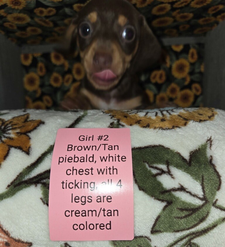 We will occasionally run ads for other reputable breeders in our area and you will see their puppies and details listed inside a blue box. All other puppies on the page will belong to Christina of minidatsun.com.